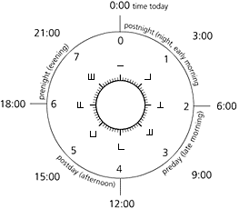 forget what you know about hours, days and weeks. only leave the natural time measurements (day: earth turns round 1 time,